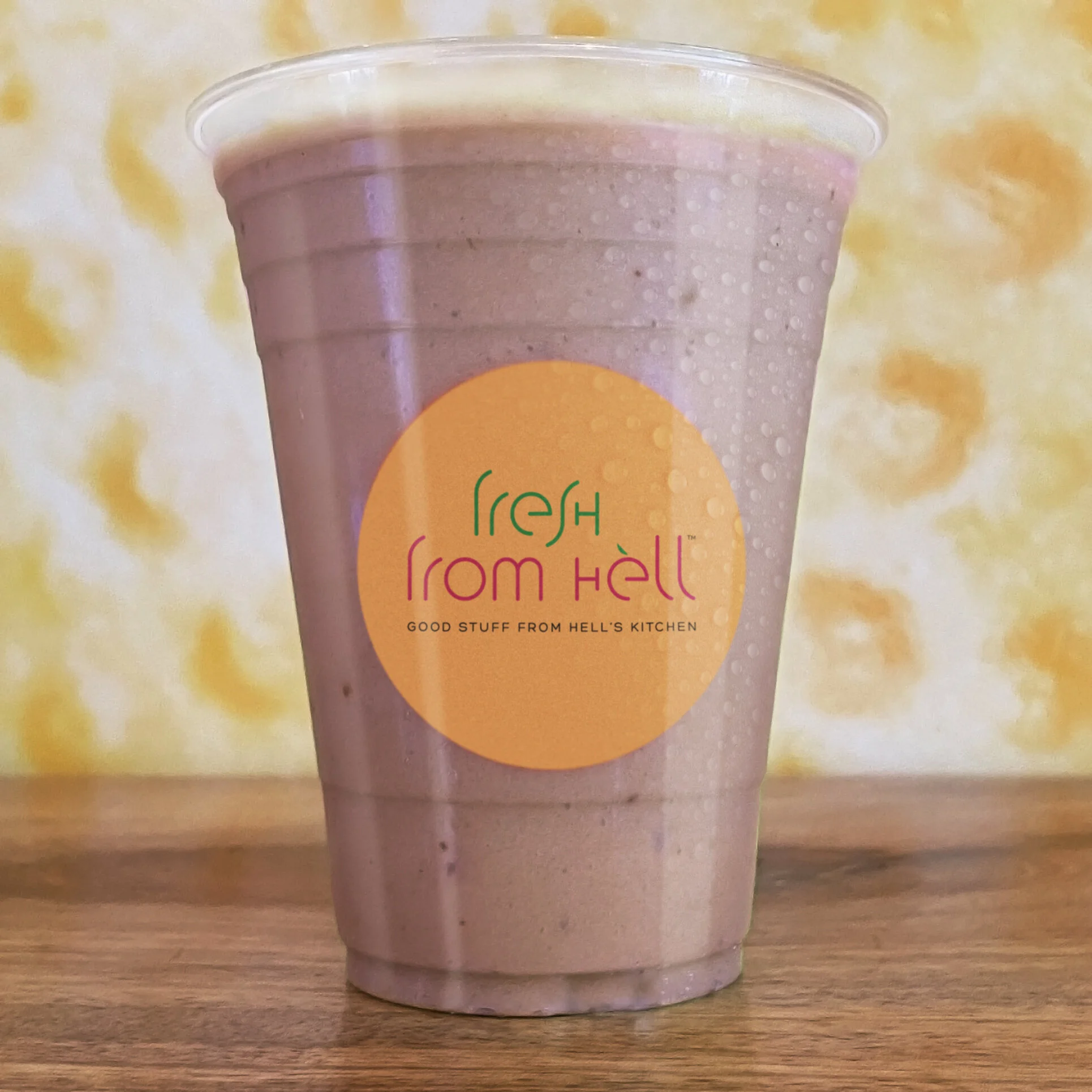 Açai, blueberries, walnuts, chia seed, maca powder, banana, agave, coconut milk